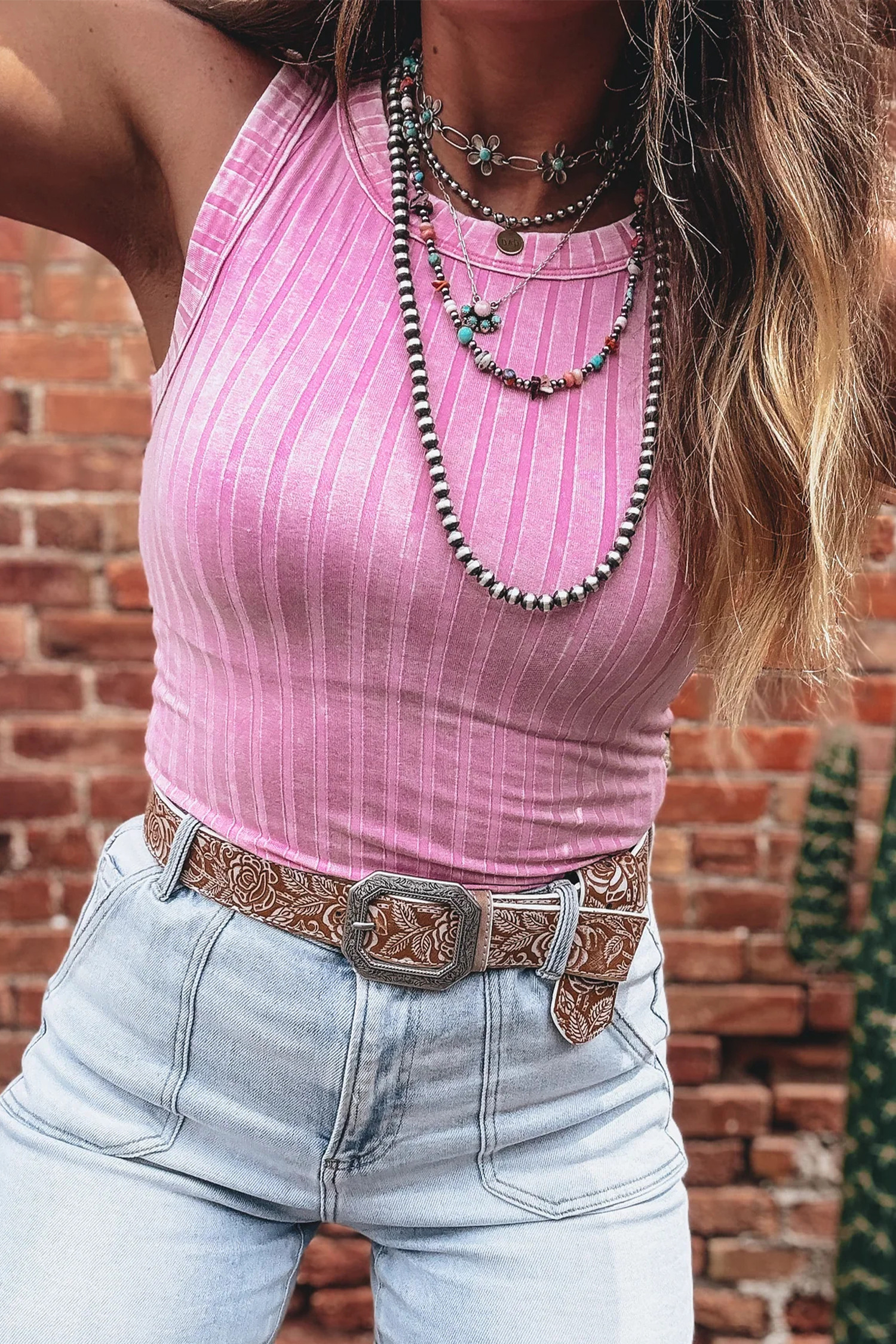 Bonbon Slim geribbelde tanktop met minerale wassing