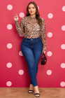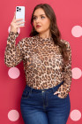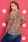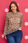 Bruine plus size top met col en luipaardprint.