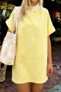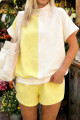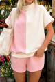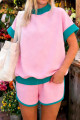 Effen T-shirt met zichtbare naad en opstaande kraag, oversized model, casual shorts, 2-delige set