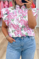 Roze bloemenprint geplooide mouwen geplooide knoopjes overhemd