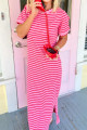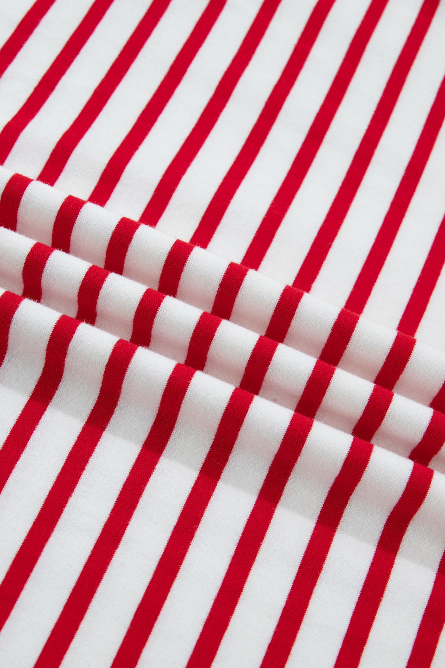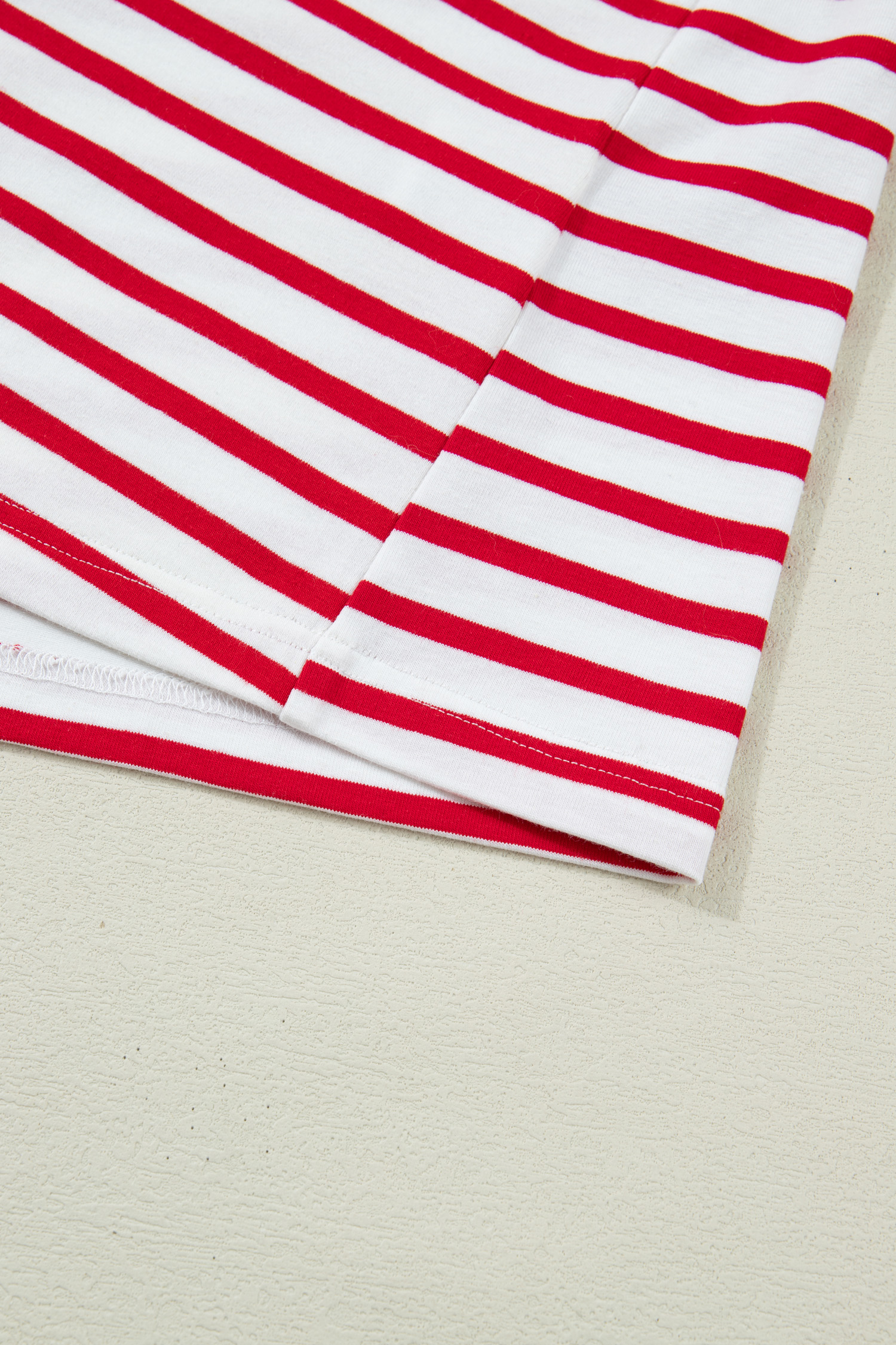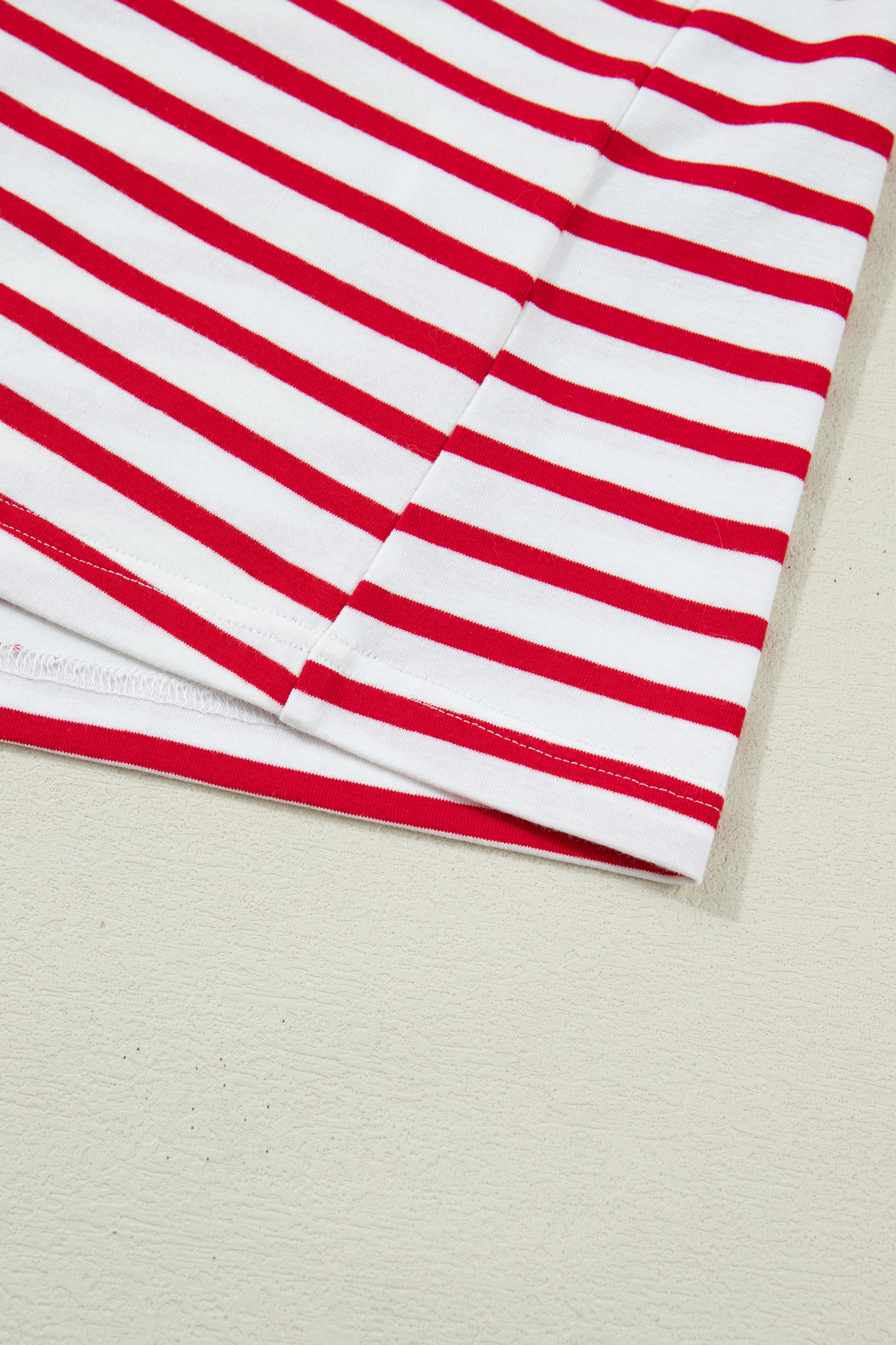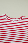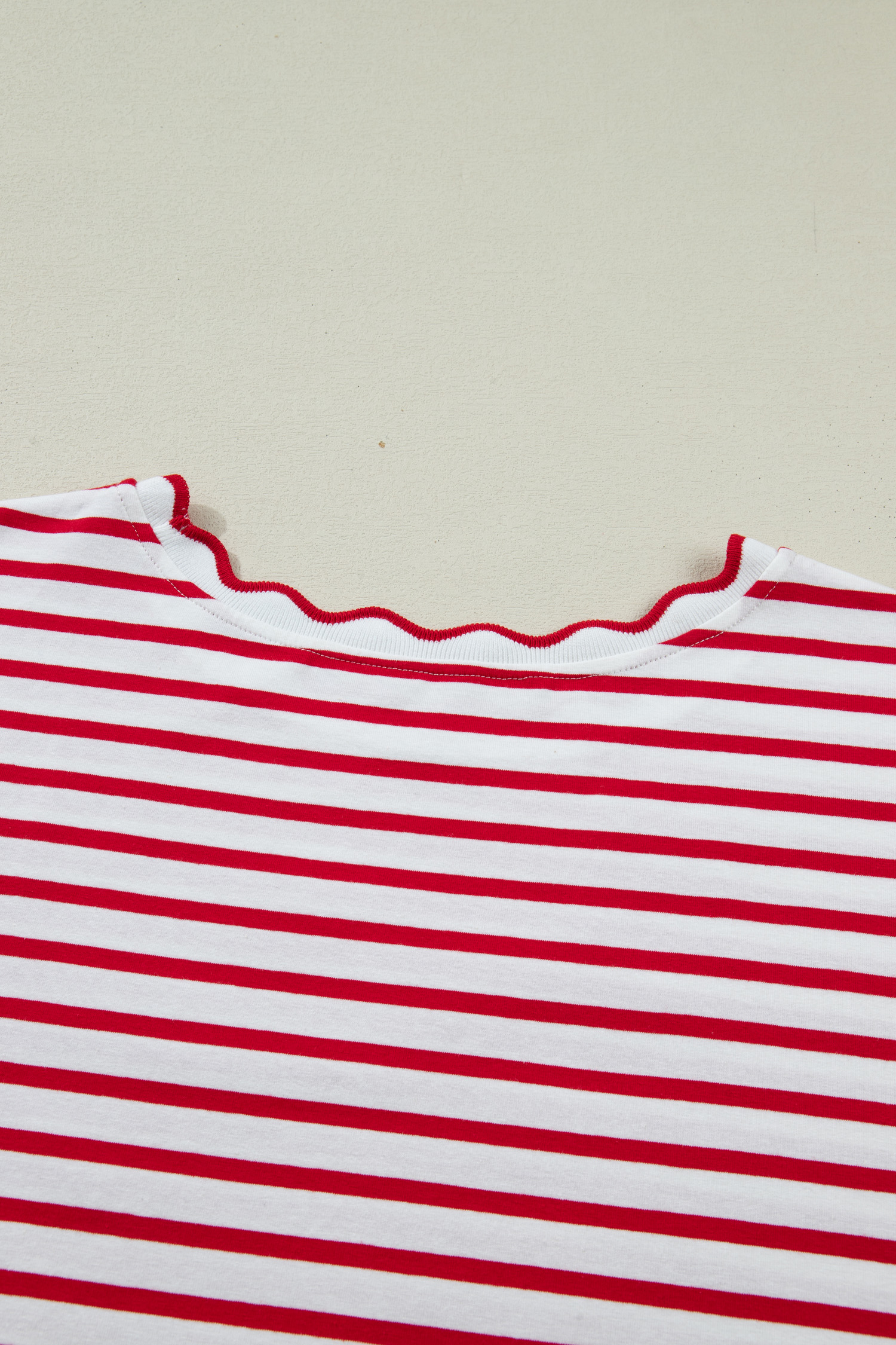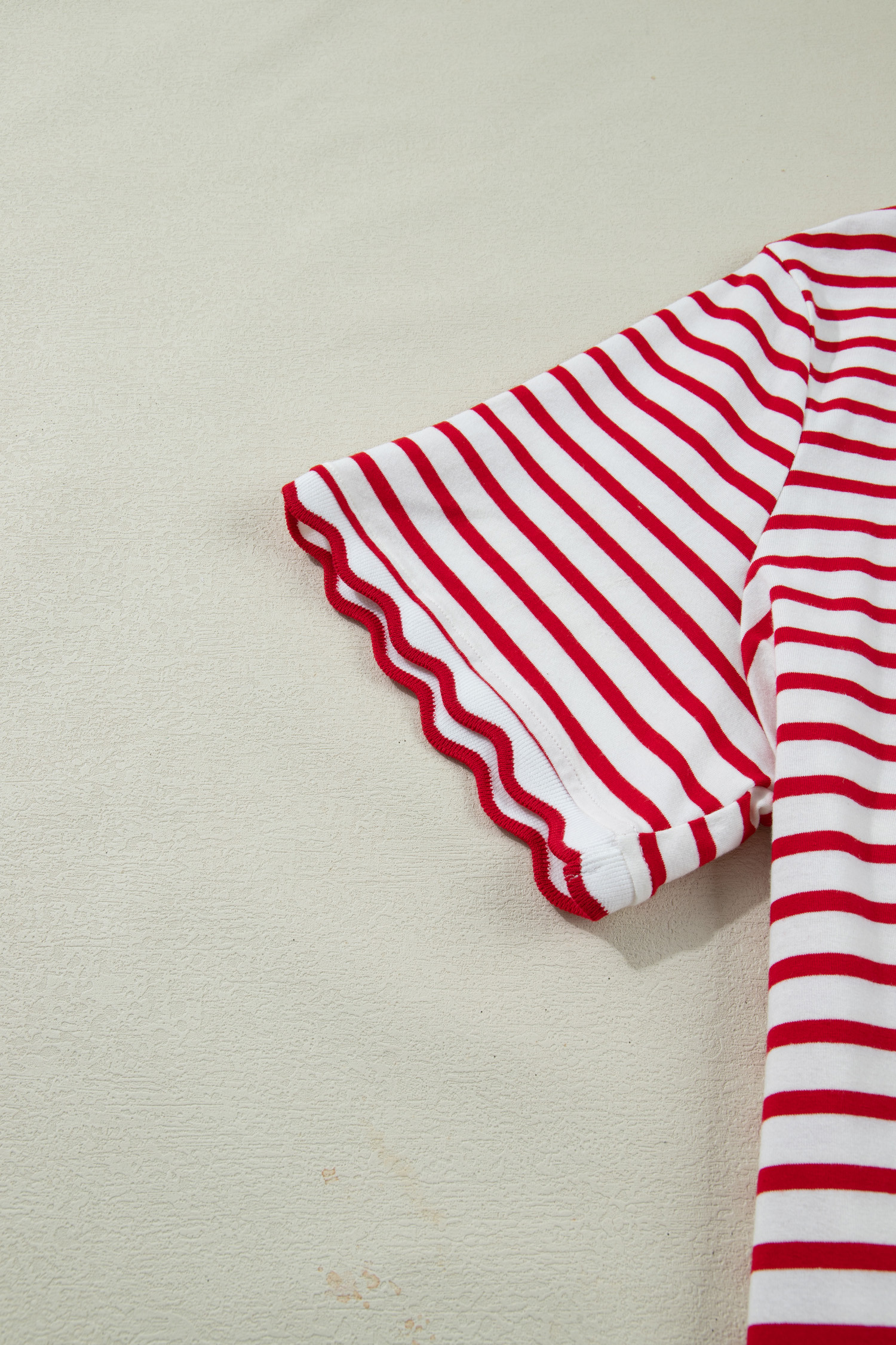 Rode gestreepte top met ronde hals en geschulpte rand, korte mouwen, plus size