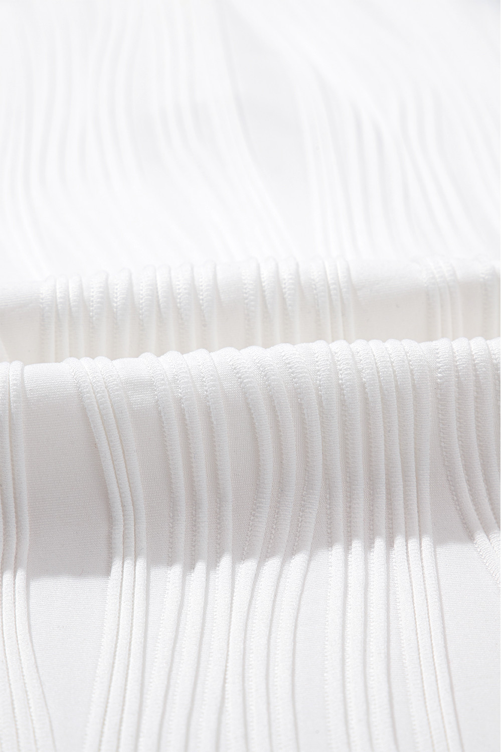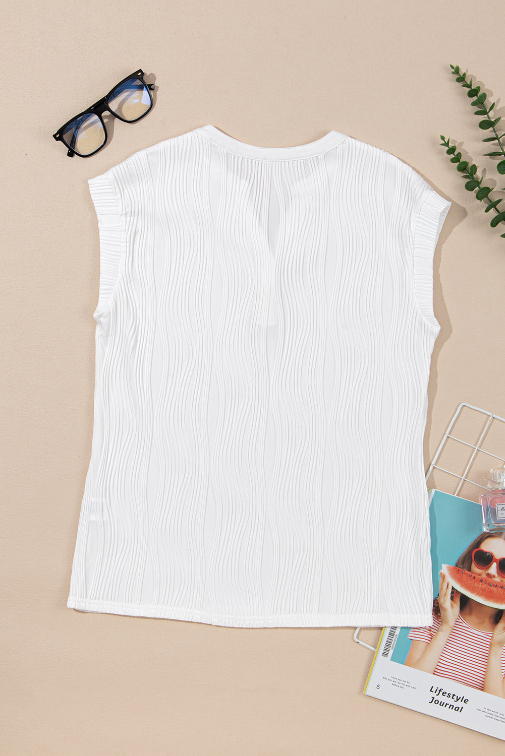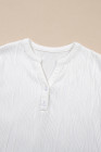 Witte T-shirt met V-hals en golvende textuur en knoopsluiting