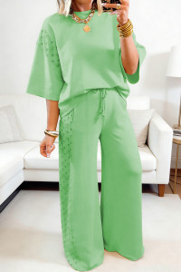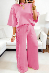 Effen oversized T-shirt met oogjeskant en patchwork, losse broek met trekkoord, 2-delige set
